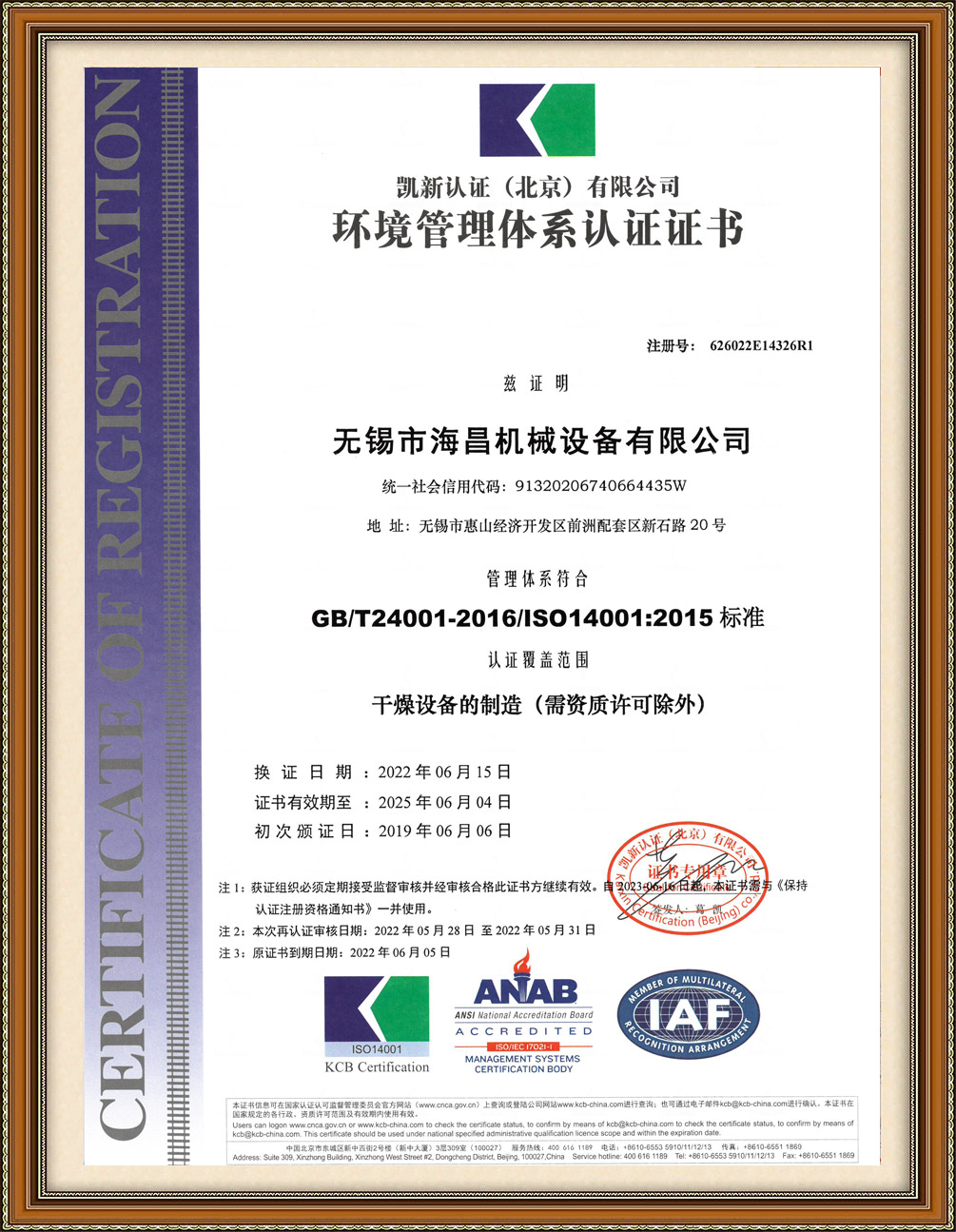 ISO14001證書(shū)(2019-2025年)